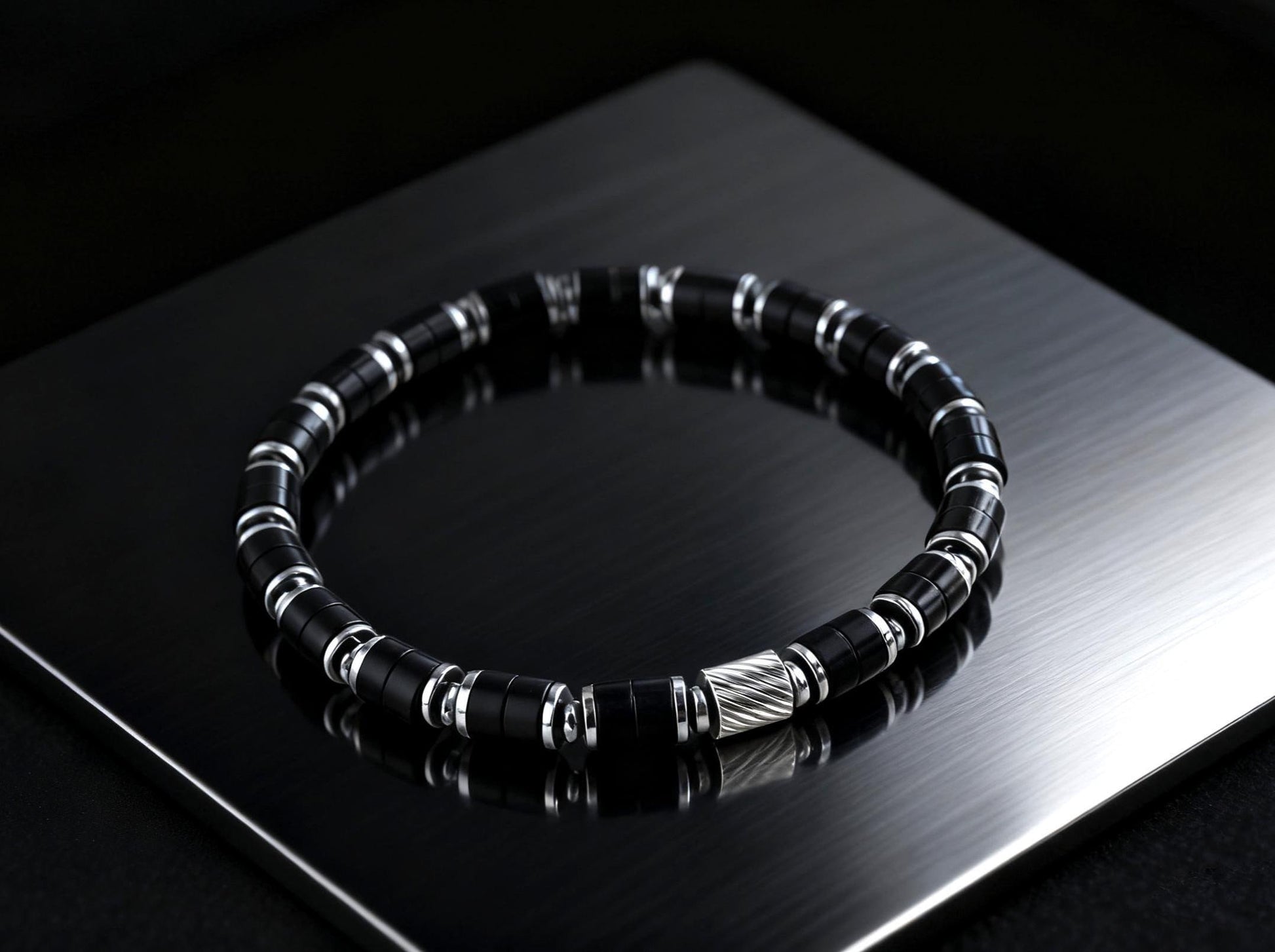 Ripple Guard Black Onyx Silver Plated Stretch Bracelet 6mm