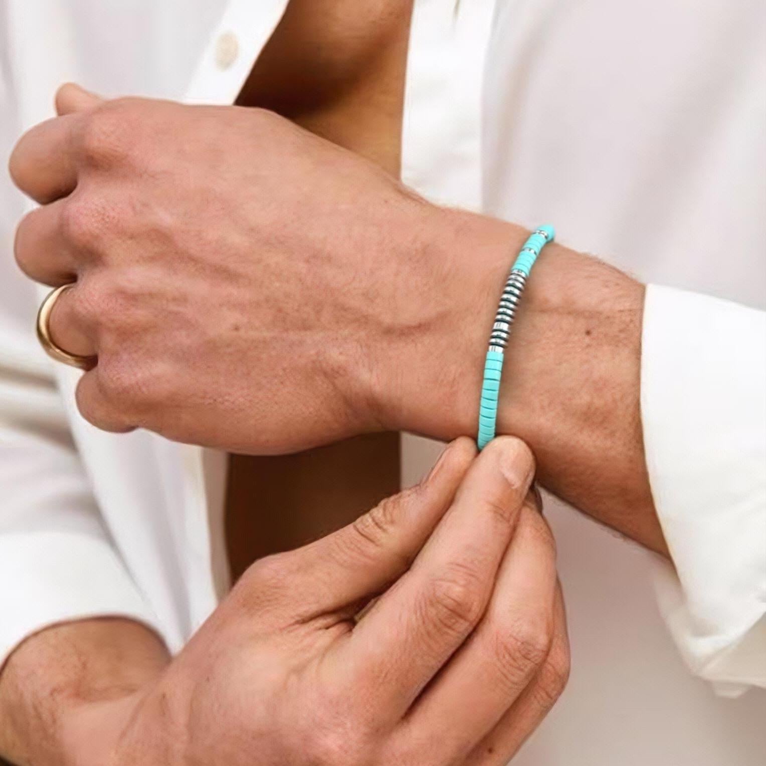 This bracelet is crafted with genuine natural turquoise beads-each one carefully selected for its rich mint hue and smooth finish. We use high-quality surgical stainless steel or titanium steel components, ensuring long-lasting wear that won't tarnish, rust, or irritate sensitive skin.