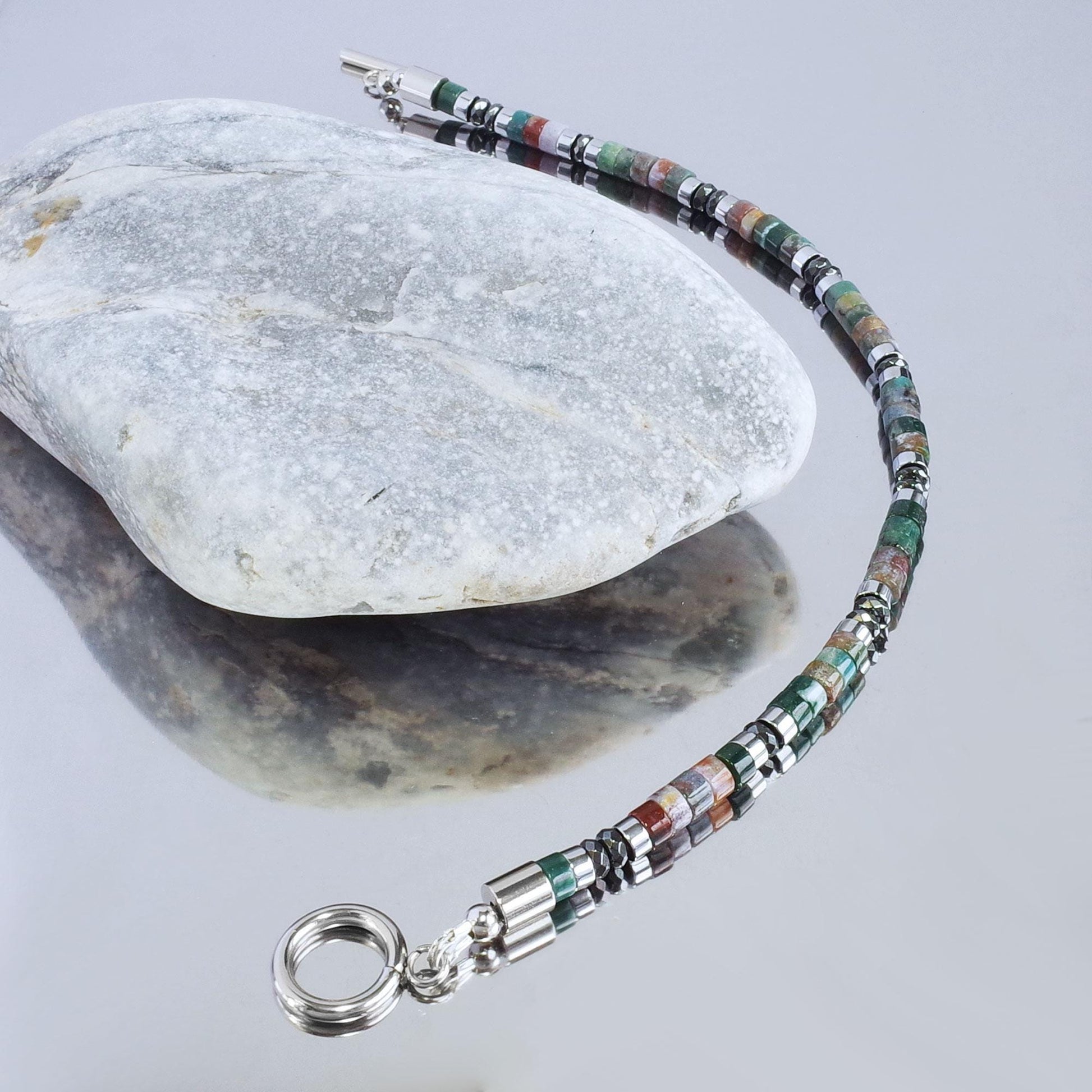 Indian Agate is a beautiful and versatile gemstone, primarily sourced from India. It is a form of chalcedony quartz, known for its unique banded patterns and rich colors such as green, red, brown, and gray. This stone is highly valued for its grounding and stabilizing energies, which promote inner strength and emotional balance. It is also believed to offer protection against negative energies, making it a popular choice for spiritual and healing practices. Indian Agate can enhance mental clarity and focus, making it beneficial for meditation and daily wear. Its connection to the root chakra helps in maintaining a sense of security and stability.