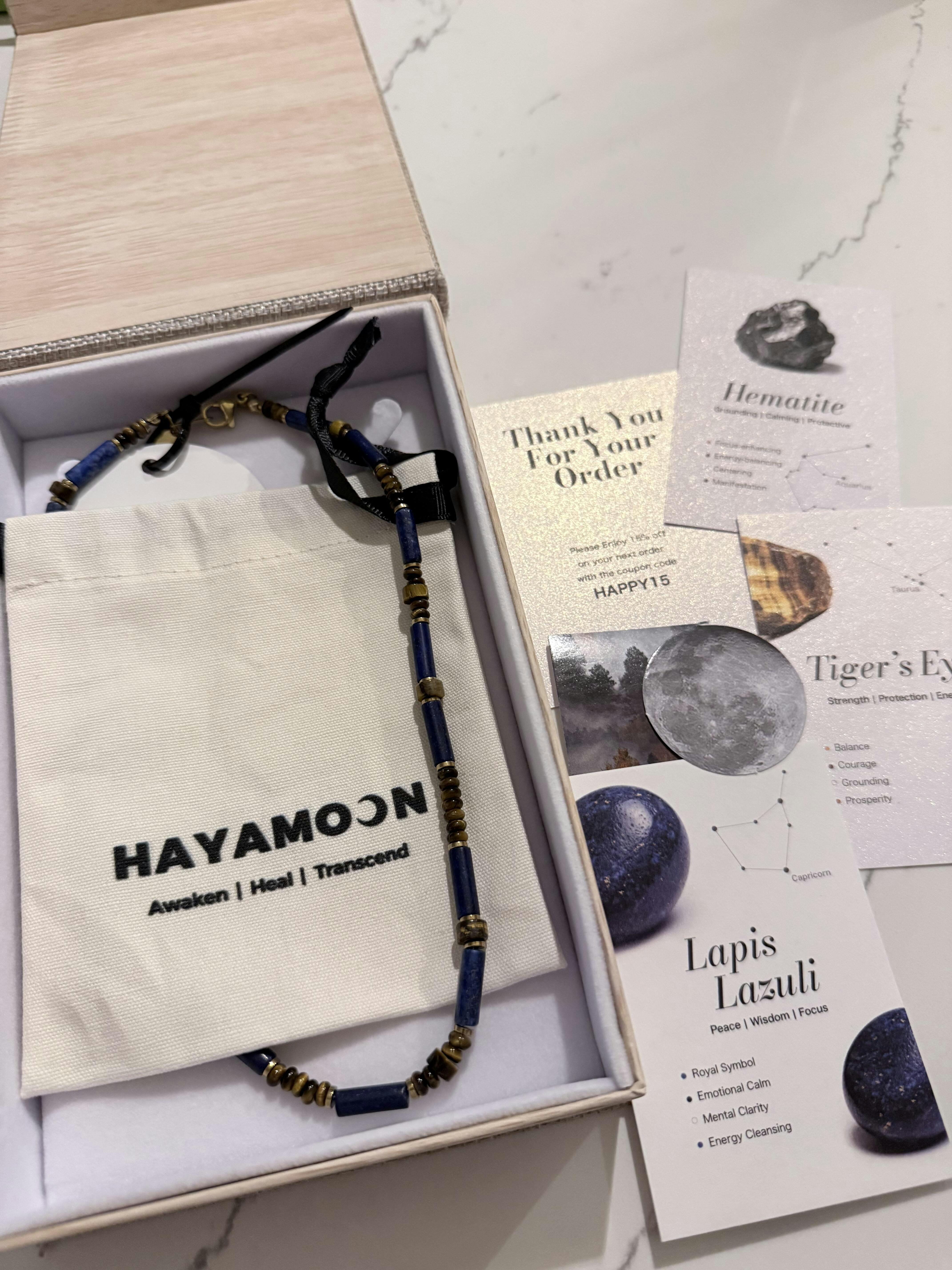 Beautifully packaged and thoughtfully made. The bracelet feels high quality, fits comfortably, and you can really sense the care put into every detail, from the stones to the information cards included. I love the meaning behind the lapis lazuli and tiger’s eye, it makes this piece feel personal and intentional. Would definitely purchase again and highly recommend as a gift or for yourself.