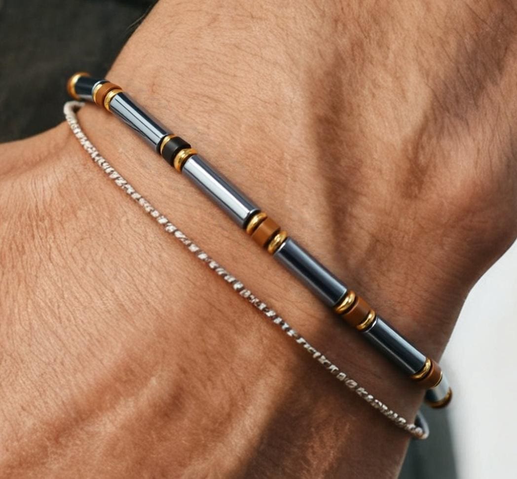 Hematite Tube & Tiger's Eye Beaded Bracelet